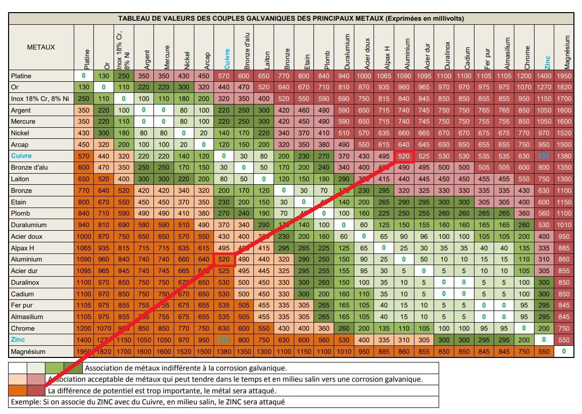 Non Francky, juste de l'eau suffit (c'est vrai que l'électricité accélère les choses..) Regarde le lien et le tableau ci dessous, c'est inquiétant....(J'ai encadré les valeurs inquiétantes). Cliquer sur la photo pour agrandir celle-ci. Moi j'ai toujours vu et mis des joints aluminium sur les carters et les systèmes de freinages pour cette raison. C'est pour cela que j'expose ce problème. 31/03/2025 11h50