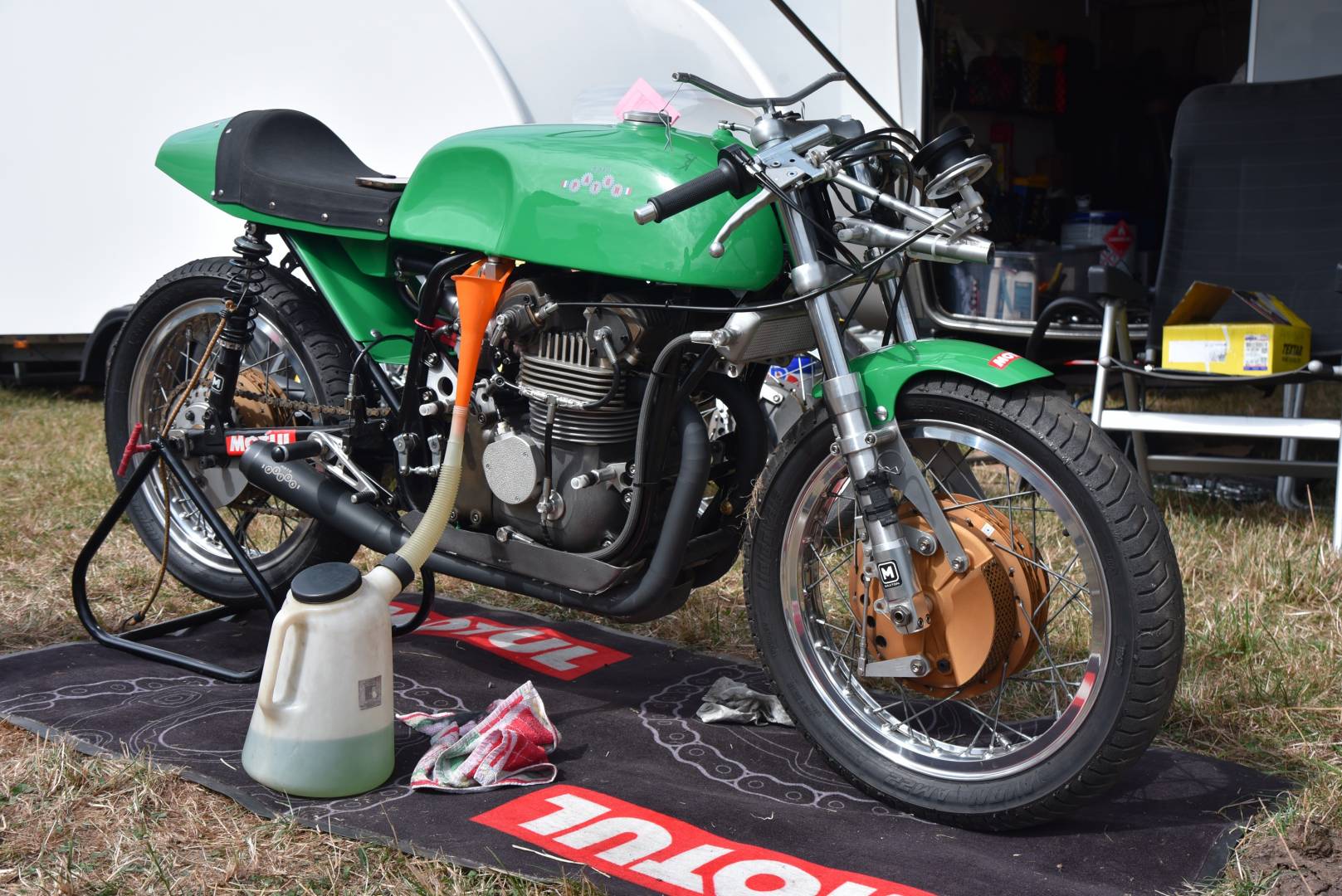 Hello, Quelques photos suite au Belgian Classic Trophy des 22,23 et 24 Aout 2025 à Gedinne. J'espère que les différents membres su club croisés sont tous bien rentrés. Grosse majorité d'Anglaises vues ce WE: Une des dernières Koenig roulantes, son piloté a 80 ans...respect: Les Italiennes étaient tout de même présentes: De nombreux sides: Un side très rare sur base de moteur 1000 Vincent ...alimenté par des Dell Orto: Et un équipage sur base d'Oural...pas ridicule: A bientôt, à l'AG. Bises à vous 12 Réponses