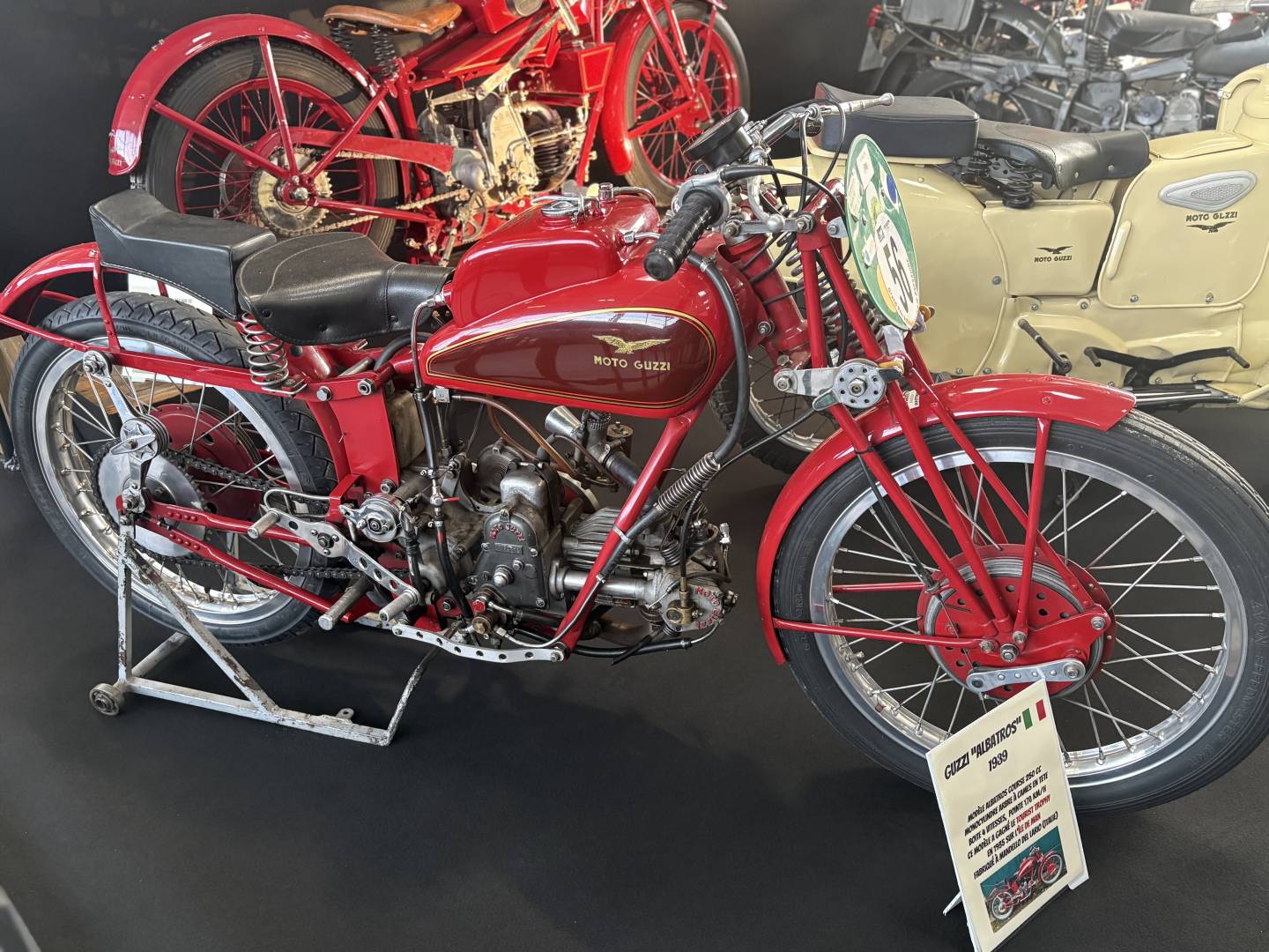 Et les Moto Guzzi. dont une très rare C2V de 1928, une des premières motos de course officielles.